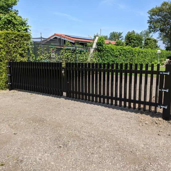 De poort is volledig verzinkt en voorzien van een 2laags mat zwarte poedercoating.